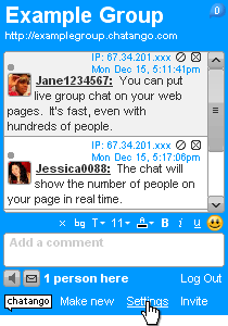 Os moderadores podem banir usuários e excluir mensagens. Sugerimos que você faça pelo menos um moderador para cada 10 pessoas on-line. Para fazer novos moderadores que você deve estar logado como o proprietário e clique em Settings > Add/remove moderators.