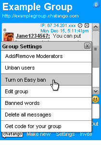 Se você é um grande grupo de moderação no modo de proibição fácil lhe permite banir um usuário e excluir todas as mensagens com um clique. Para ativar a proibição fácil você deve ser o proprietário ou um moderador, clique em Settings > Turn On Easyban.